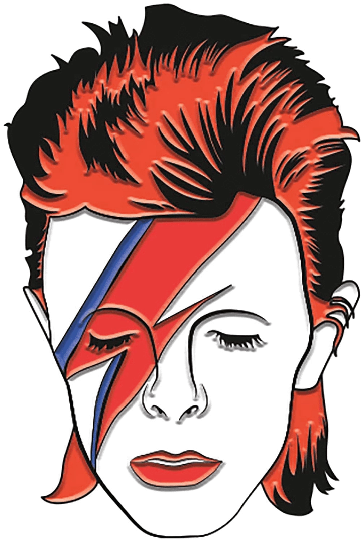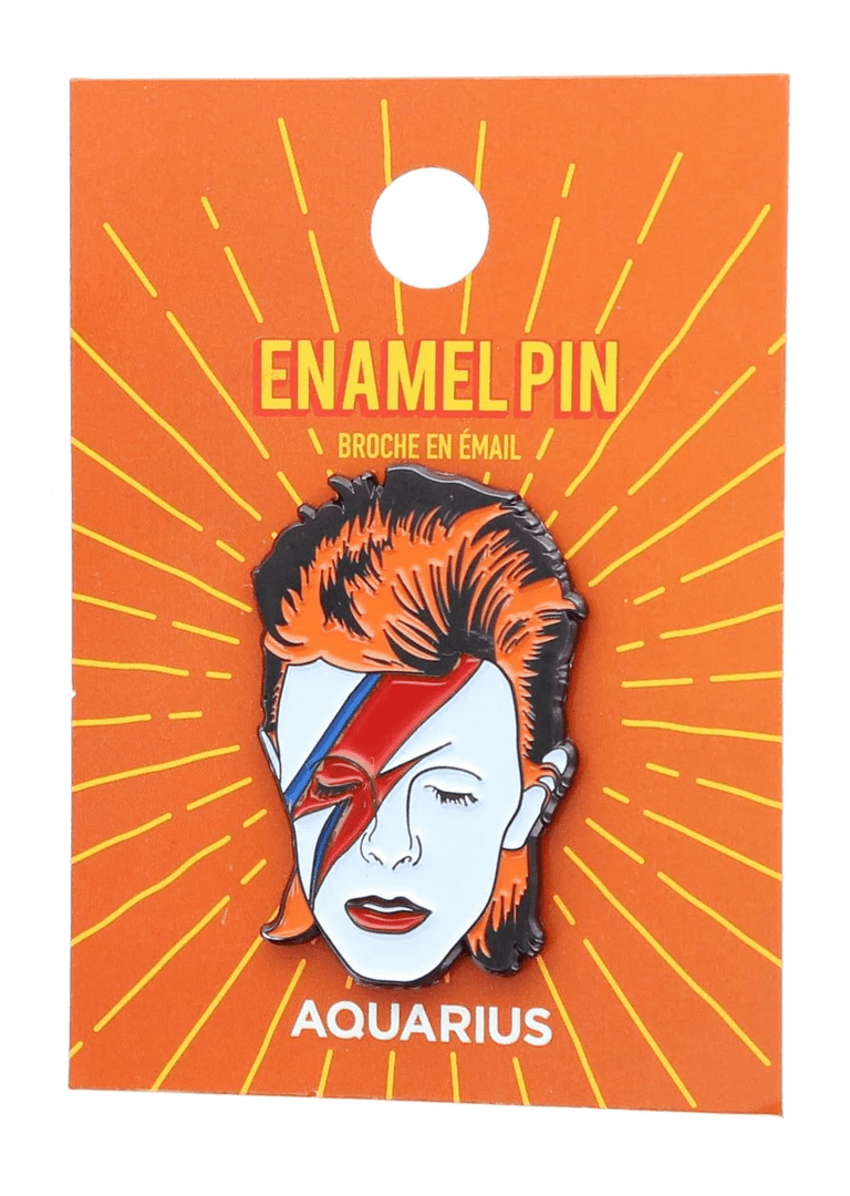 Add a little flair to your jacket or bag! This David Bowie Enamel Pin comes packaged on a hang card. Measures approximately 2-inches x 3-inches.