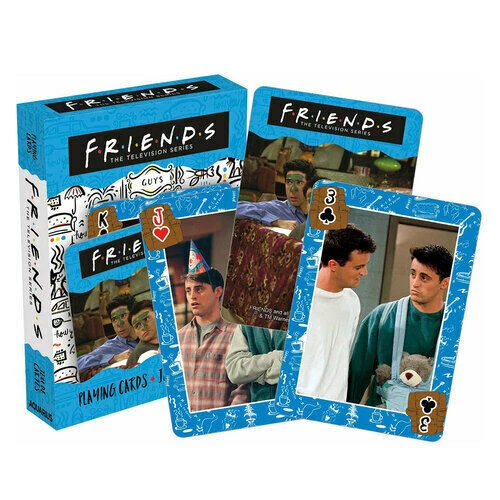 Order the Joey special, two pizzas, and enjoy these playing cards featuring 54 unique images of Ross, Chandler, and Joey, the three guys of Friends we all love. Product Specifications: Friends – Guys Playing Cards 100% officially licensed merchandise. Deck contains multiple exclusive images. Cards measure 2. 5 × 3. 5 and have a linen type finish. Great item for fans and players alike. Poker size cards.