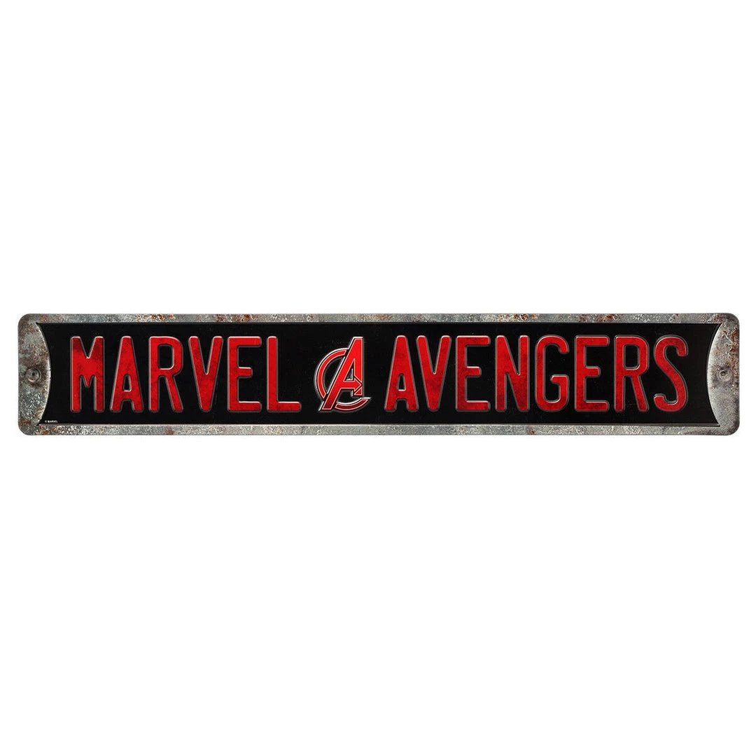 - Our embossed tin Marvel Avengers street sign is heroic fun for any game room or man cave.