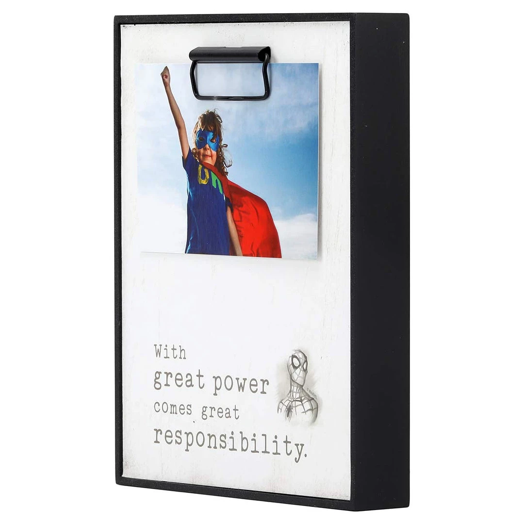 - MARVEL OFFICIAL PRODUCT : “Give me great power,” you say. “Then we’ll see how I handle the responsibility.” Yeah, that’s what Spider-Man used to think. Now people turn to him any time a handbag is stolen or evil villains try to take over the world. Our minimalist Spider-Man sketch is set in a photo frame, capturing the conundrum of living a super life.