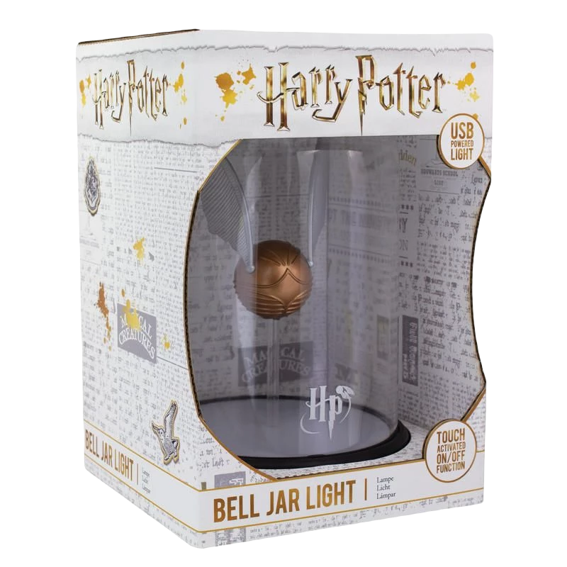 Capture the Golden Snitch, proudly put it on display, and use it to light up your room! This Golden Snitch Light features the Golden Snitch floating inside a tall illuminated bell jar. Watch the Snitch glisten when the light is switched on, and brighten up your desk, bedside table or shelves. A fabulous gift for Harry Potter fans and lovers of the magical game of Quidditch, the Golden Snitch Light is 20cm (7.9″) tall and USB powered (USB cable included). First published in 1997, J.K. Rowling’s bestselling series of novels following the magical adventures of Harry Potter, Ron Weasley and Hermione Granger has since become a cultural phenomenon. A huge success in novel form, the world of witchcraft and wizardry was then given big screen treatment in 2001, launching one of the most successful blockbuster film franchises in cinema history. Harry Potter is instantly recognisable to millions of people across the world, and is hugely popular among fans of all ages. The Golden Snitch Light is an officially licensed Harry Potter product. This product is made using BDPâ„¢ which stands for Breakdown Plastic – an organic additive that helps plastic decompose at landfill without affecting either its structural integrity (before landfill) or the recyclability of the product.