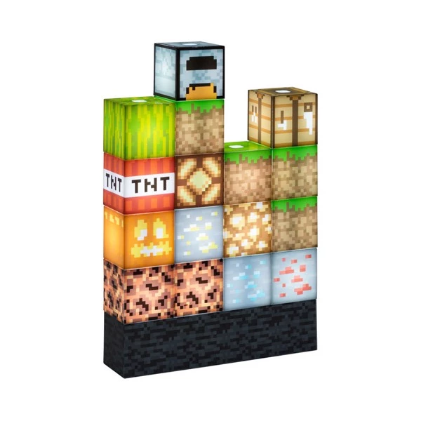Minecrafters will love this amazing light up level scene with 16 separate conductive blocks that illuminate and can be arranged in any combination upon the bedrock base. The different blocks include grass, TNT, diamond ore, Redstone, gold and more. This Minecraft Block Building Light is supplied in a printed gift box and makes the perfect gift for any gamer or fan of Minecraft. It also makes a great, unique addition to any collection of Minecraft Memorabilia for those in the fandom.