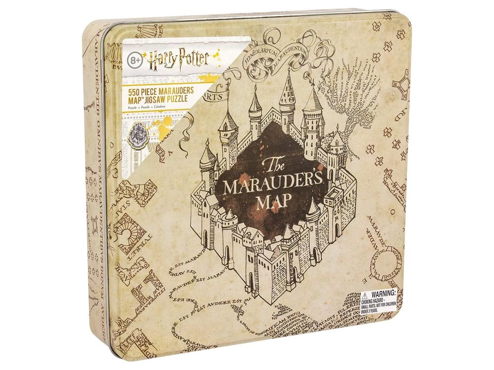 When completed, this gorgeous 550-piece Marauders Map puzzle reveals its true nature with the magic words, “I solemnly swear that I am up to no good” written in the middle, along with footprints all over the place. This puzzle comes in a collectible metal tin, perfect for display or holding your puzzle pieces to re-build over and over again.