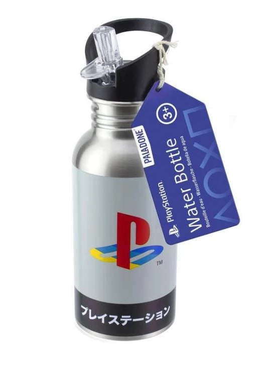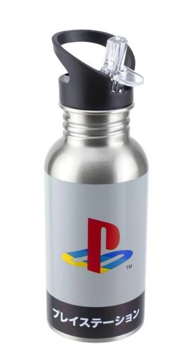 Stay hydrated wherever you are with this PlayStation Metal Water Bottle. The 500ml (16 fl oz) heritage inspired stainless steel water bottle features the original multicolour PlayStation logo and the Japanese katakana for PlayStation beneath it. The bottle comes with an easy to use flip up straw so you can sip on the move.