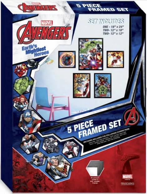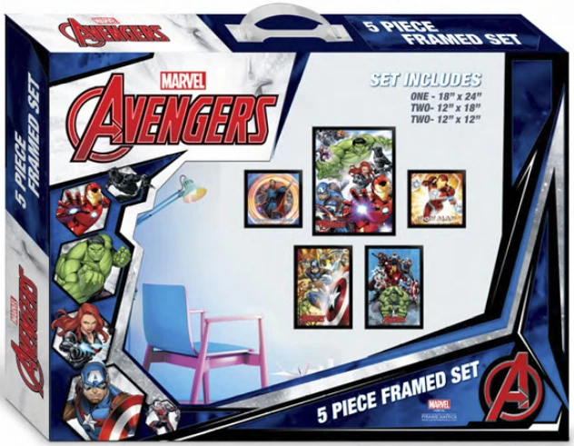 This AVENGERS 5 PIECE FRAMED SET offers a great value as there is over $90.00 worth of product at retail if the pieces were retailed separately!Â