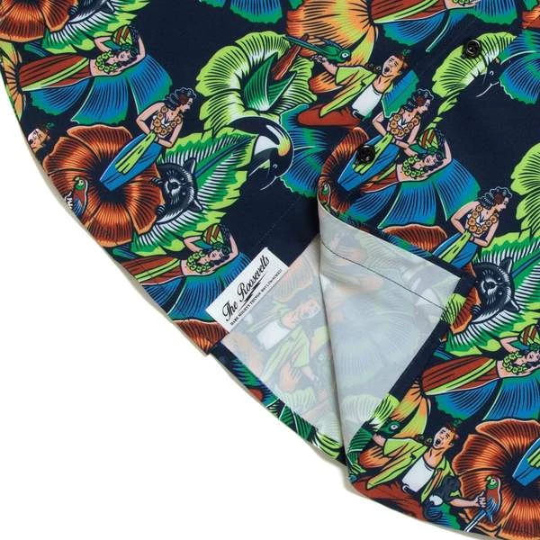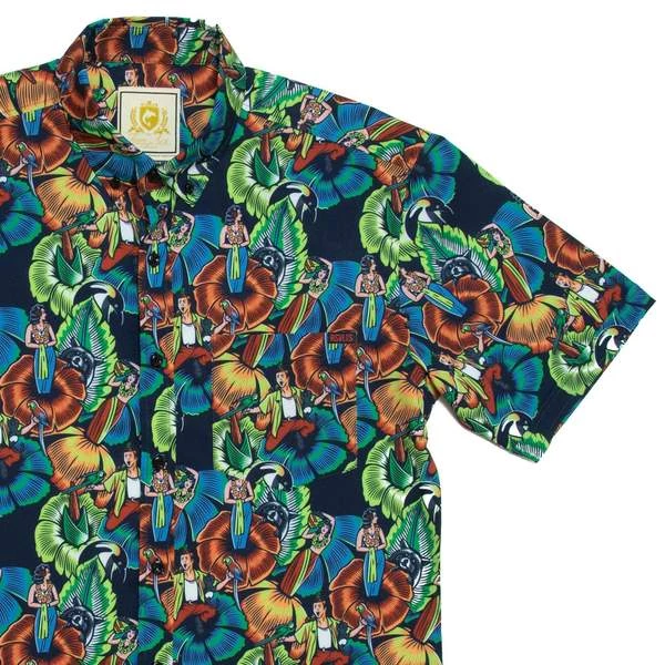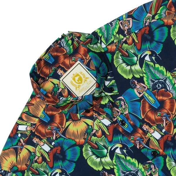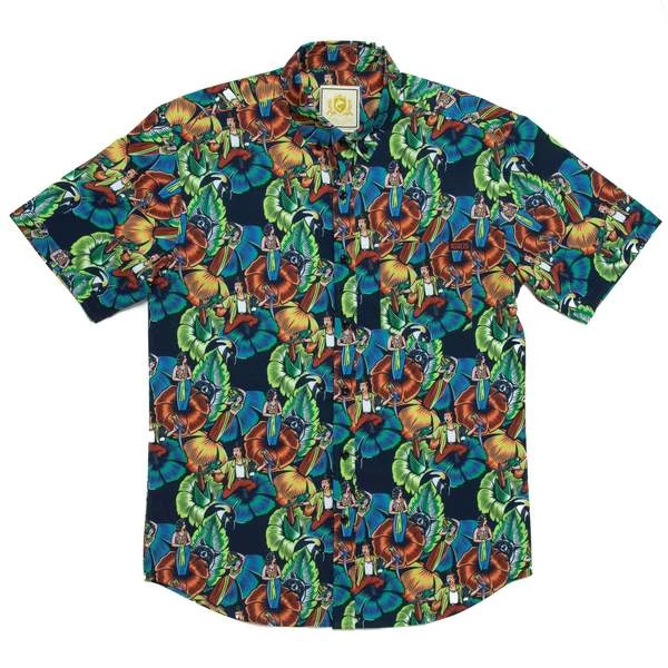 Ace wears “Jungle Friends” at the beginning of the movie, when he enters his apartment and is flocked by every species in the animal kingdom. We added little Ace Venturas and upped the vibrance so you’re the most colorful thing in the room, wherever you wear it.