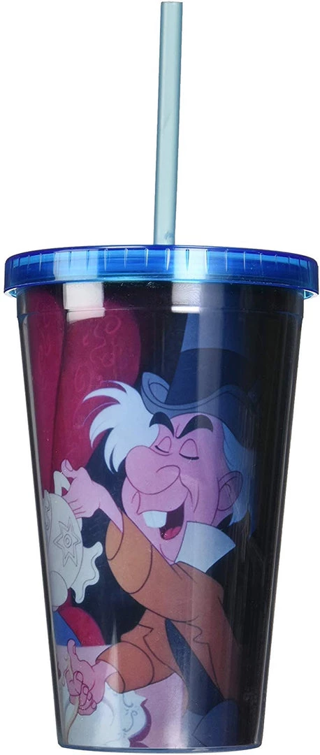 Disney Alice Tea Time Plastic Cold Cup is a double-walled acrylic tumbler that holds 16-ounces of your favorite refreshing drink. The screw-on lid has leak-resistant silicone seal and a bend-proof straw. This cup can hold up to 16-ounces and shows off a vibrant image of Alice at tea time. Show off your love for the classic Disney film with this cup! This stylish cup would make the perfect gift for any Alice In Wonderland fan. This cup is BPA-free for your safety. Hand wash only, do not microwave.