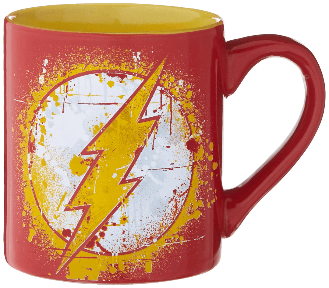 This DC Comics Flash Splatter Paint Logo Ceramic Mug lets you enjoy up to 14-ounces of your favorite hot drink in style! Our mug is made of durable, BPA-Free ceramic that holds heat well with an easy grip handle to make your drinking experience easy and enjoyable. This item makes a great gift for fans who will love the awesome design as well as the superb quality. Express your love for Flash with this mug! This mug is microwave and top-rack dishwasher safe.