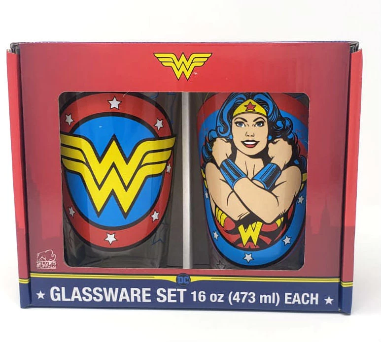 - A MUST-HAVE FOR WONDER WOMAN FANS: Fans across the world know that Wonder Woman is a might superhero who wields fierce weapons and combat skills. Celebrate your favorite superhero with this collectible pint glass set!
