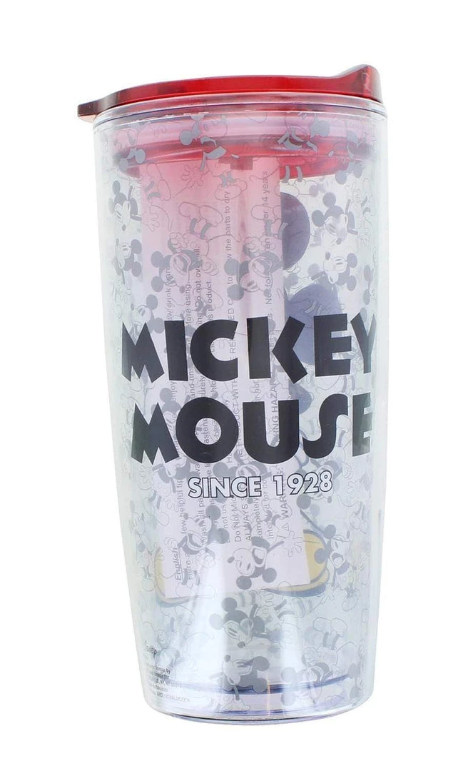 - FUN DESIGN: Clear tumbler features Mickey Mouse striking a pose on one side and reads “Mickey Mouse, Since 1928” on the other side.