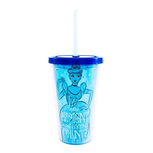 Screw-on lid has leak-resistant silicone seal and a bend-proof straw