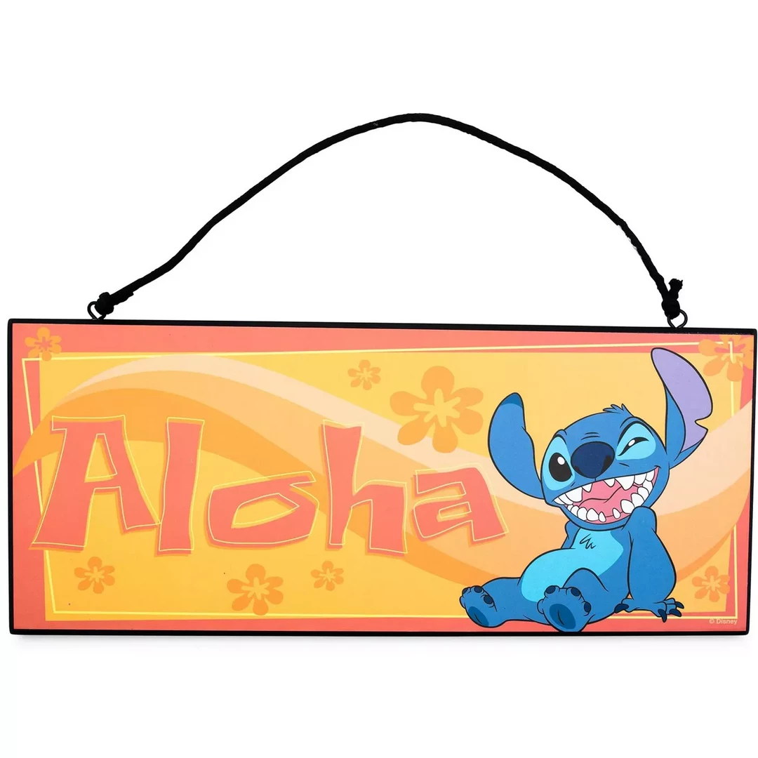 Aloha! Stitch is ready to welcome your guests into your room. This reversible door sign features Stitch on a surfboard with “Aloha” text design on one side and Stitch relaxing on the other.