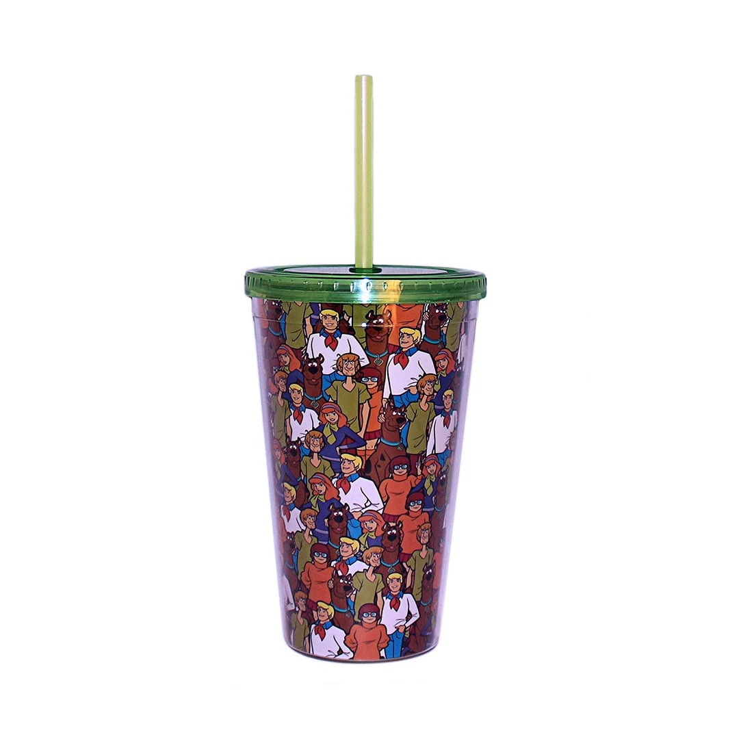 Silver Buffalo SD02087 Warner Bros Scooby Doo Character Collage Plastic Cold Cup with Lid and Straw, 16-Ounces
