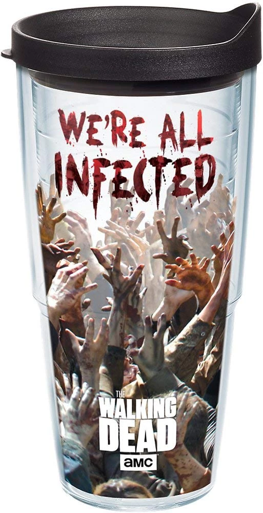 Keep your drinks from falling victim to lukewarm temperatures in The Walking Dead We’re All Infected tumbler.