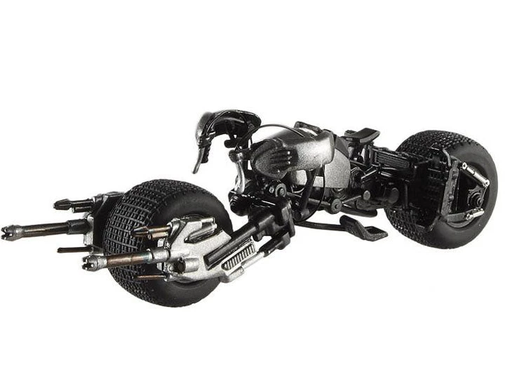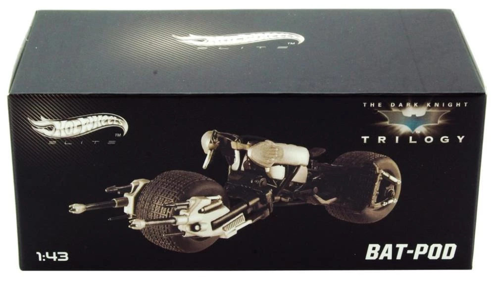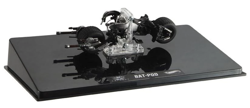 This motorcycle-ATV hybrid was custom made for THE DARK KNIGHT, fitted for ultimate protection with grappling hooks, cannons and machine guns. Equipped with a rotating saddle, the BAT-POD can maneuver under low clearances and physically elongate itself. Designed without handlebars, BATMAN steers with his shoulders, thus freeing up his hands to fight crime more effectively.
