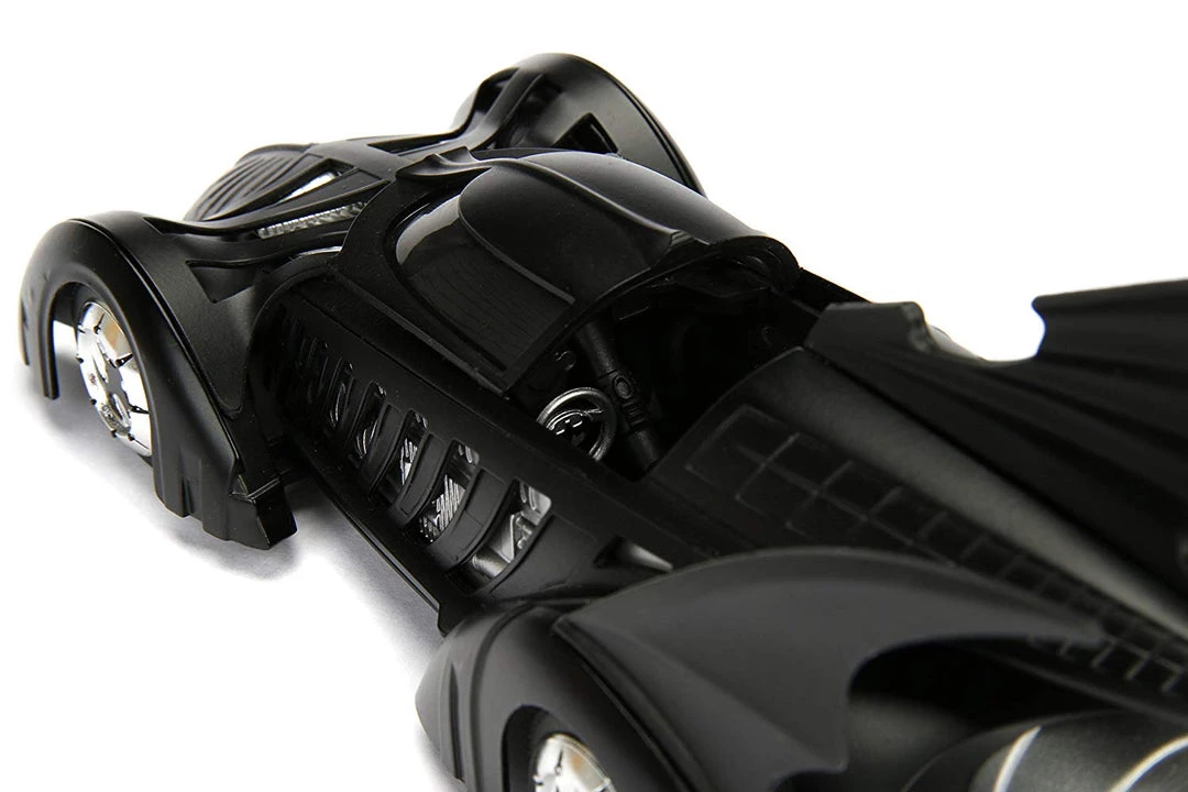 No Batman collection is complete without the iconic 1995 Batmobile! Featuring a die-cast body and rubber tires, this 1:24 Scale Batmobile is a must have in any collection! included is a 2.75 Batman figure. Whether on the streets or off-road, the Batmobile is formidable in all kinds of terrain! collect them all today.