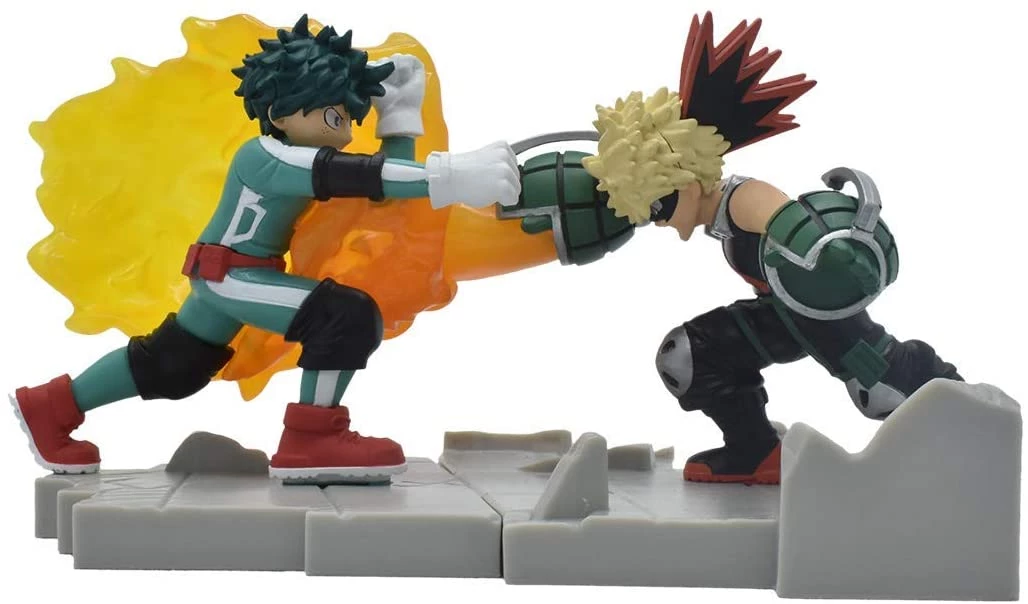 Izuku Midoriya vs Katsuki Bakugo Mega Craftable buildable scene comes in collector’s box.