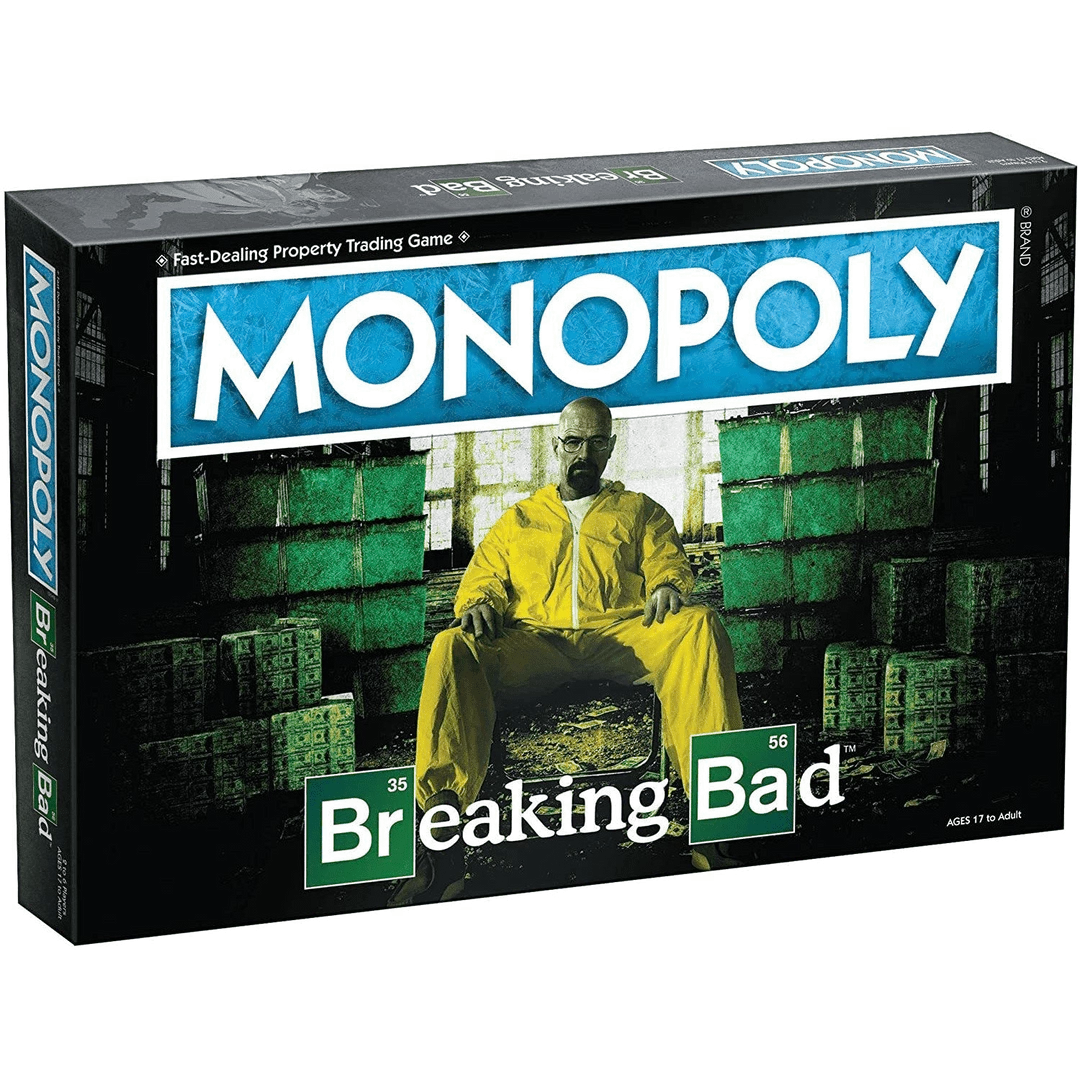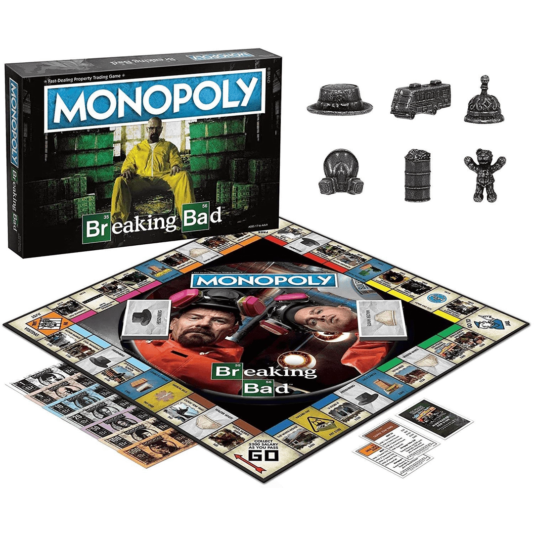 Players will want to tread lightly to buy, sell, and trade properties to be the last one standing in this risky version of Monopoly based on AMC’s hit series Breaking Bad ! Familiar locations and tokens based on iconic items from the show such as Heisenberg Hat, RV, Tio’s Bell and more will take fans back through the sordid evolution of Walter White and his own capitalistic plan. The Breaking Bad Monopoly Game makes a great addition to your next game night. For 2 to 6 players. Ages 17 and up.