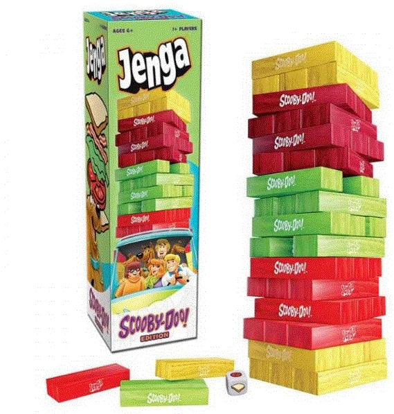Satisfy your craving for a fun and playful challenge with a version of JENGA inspired by your favorite mystery solvers! JENGA®: Scooby-Doo™ Edition takes these best friends’ appetites to new heights as players carefully remove and replace ingredients of the tallest BLT ever! Pull tomatoes, lettuce, and bacon according to the roll of the die and set up the next turn for a taste of victory… or toppling defeat!