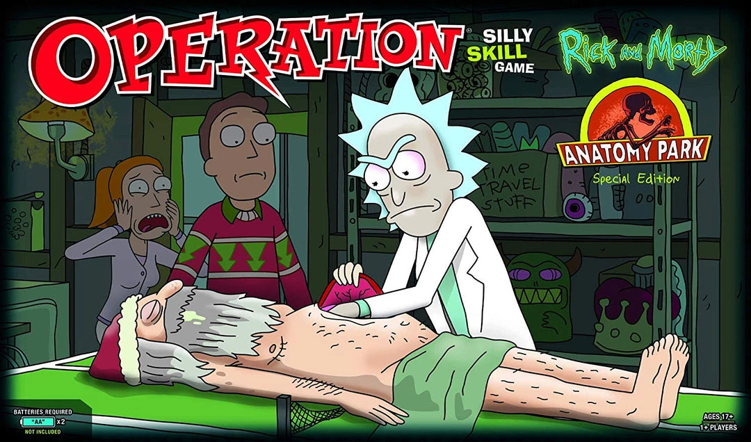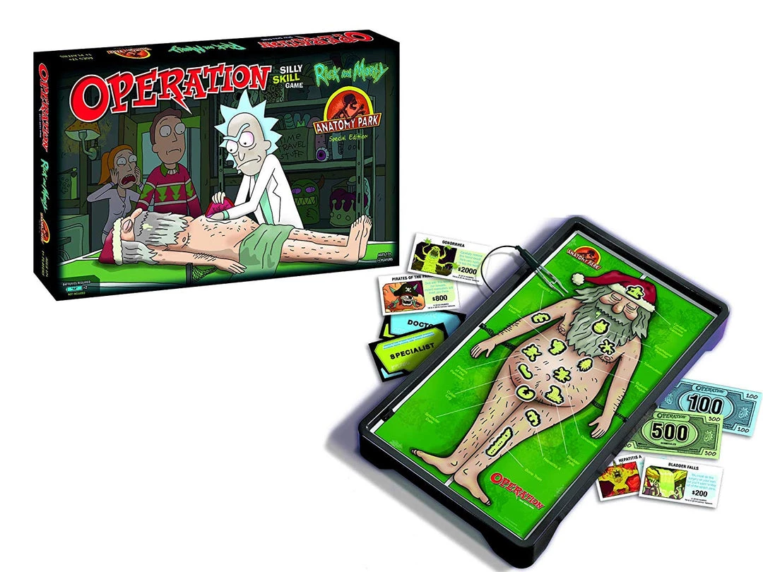 You are bidding on the “Rick and Morty Anatomy Park” version of the popular “Operation” board game. It plays just like the regular “Operation” game but with a “Rick and Morty” twist. From the back of the box: