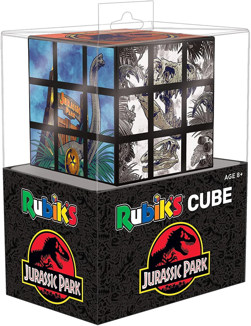 - Go back in time as you solve this officially licensed Rubik’s Cube featuring Jurassic Park artwork and dinosaurs – Jurassic Park Gate, Dinosaur Skulls, Velociraptor, T-Rex, and Dilophosaurus