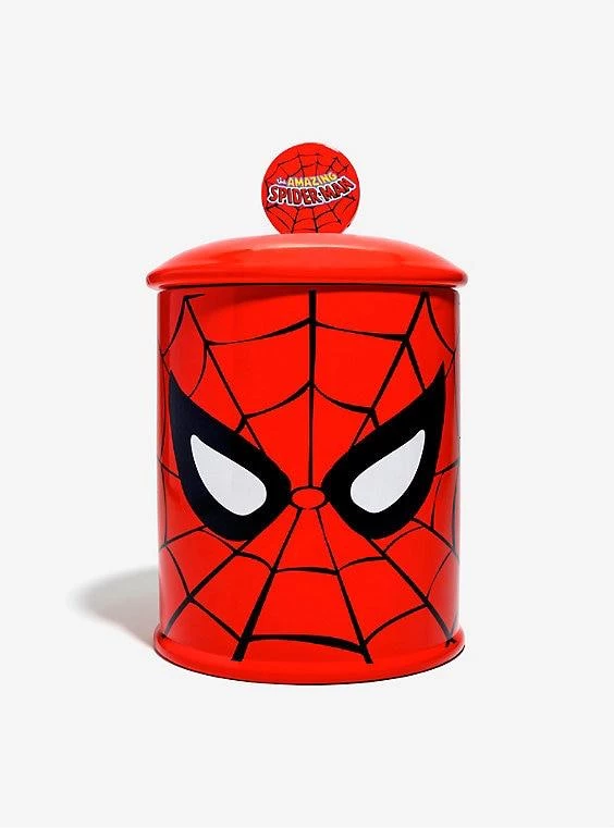 This awesome red ceramic cookie jar features a Spider-man mask design and a comic-inspired lid handle.